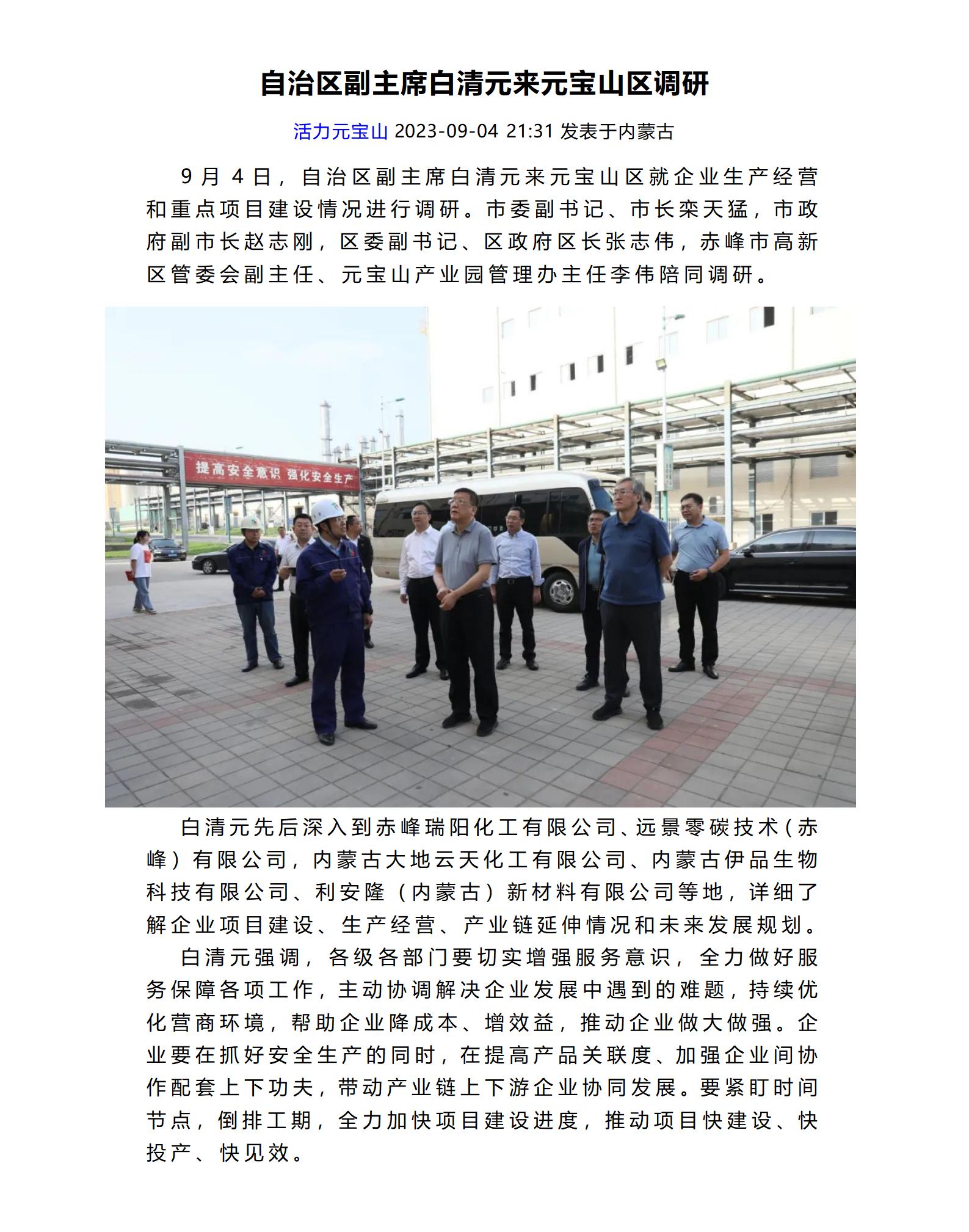 自治區(qū)副主席白清元來元寶山區(qū)調研
