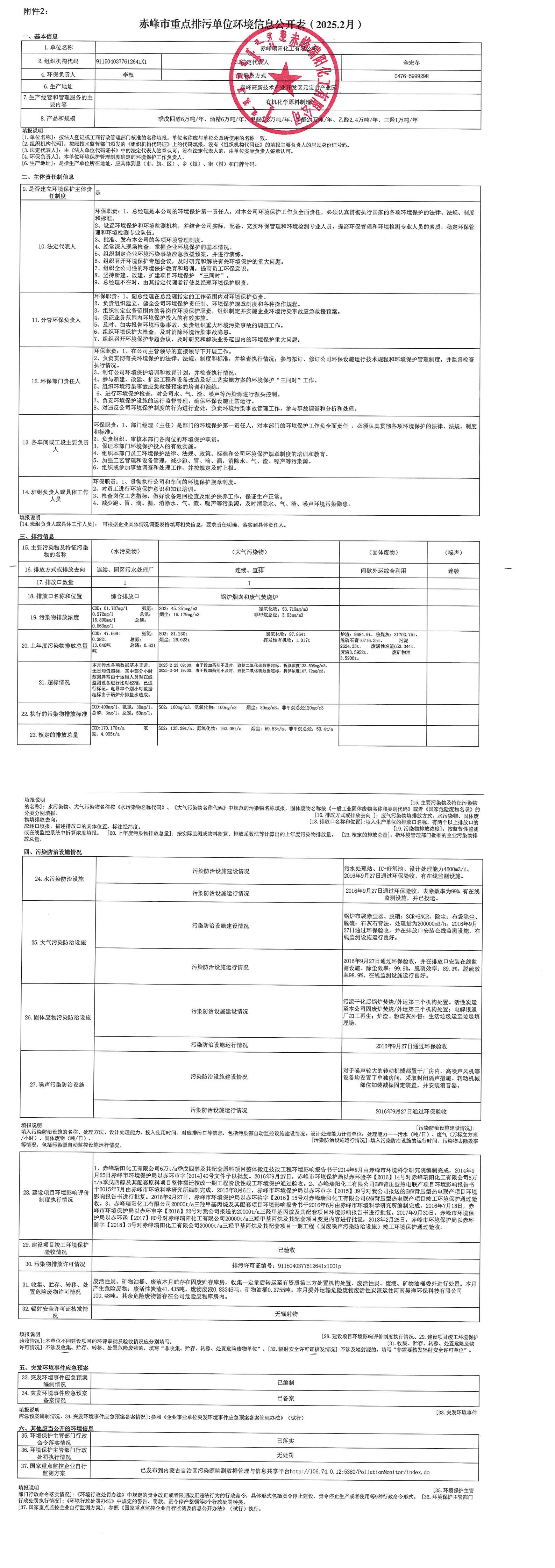 赤峰市重點(diǎn)排污單位環(huán)境信息公開表【2025.02】