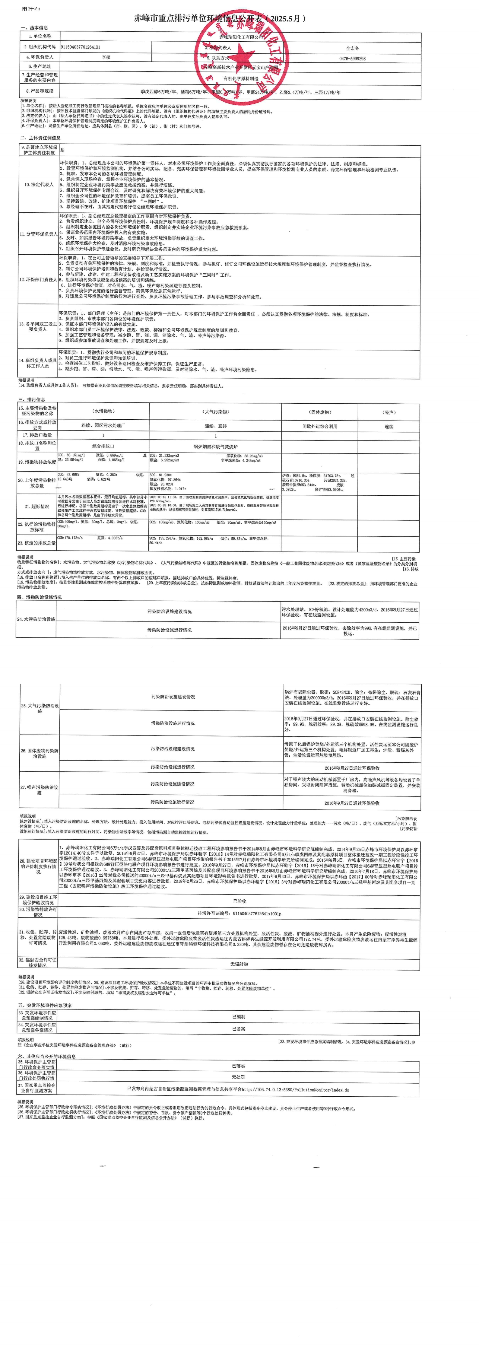 赤峰市重點(diǎn)排污單位環(huán)境信息公開(kāi)表【2025.05】